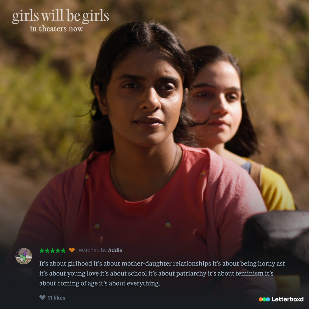 Winner of the John Cassavettes Award at the 2024 Independent Spirit Awards, Girls Will Be Girls (2024) is a delicately crafted story from director Shuchi Talati and producers Richa Chadha and Ali Fazal. The film follows Mira (Preeti Panigrahi), the prefect of an Indian boarding school in her senior year, as she begins to experiment with her sexuality. When she begins a relationship with a fellow student, her mother (Kani Kusruti) takes notice and tries to take matters into her own hands. Handling complicated thematic elements in an undeniably bold manner, the film gives a voice to Indian woman that is rarely, if ever, seen on screen.